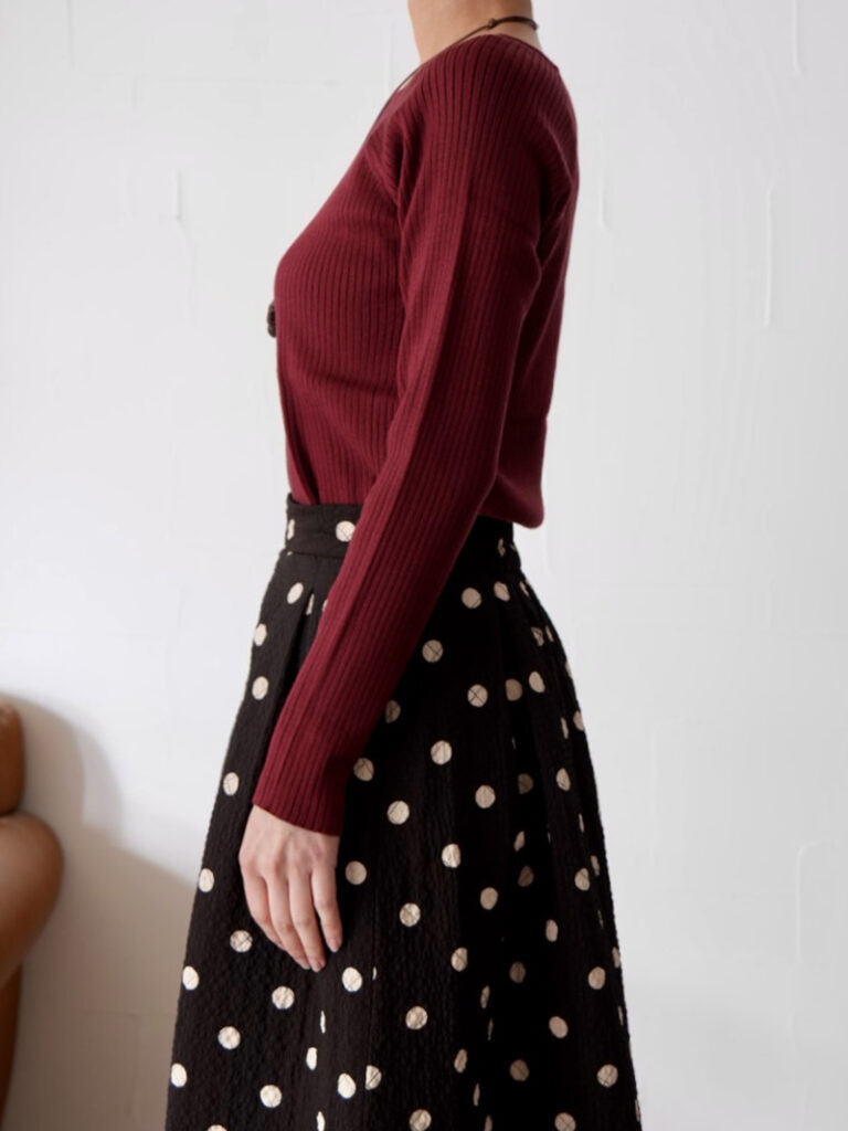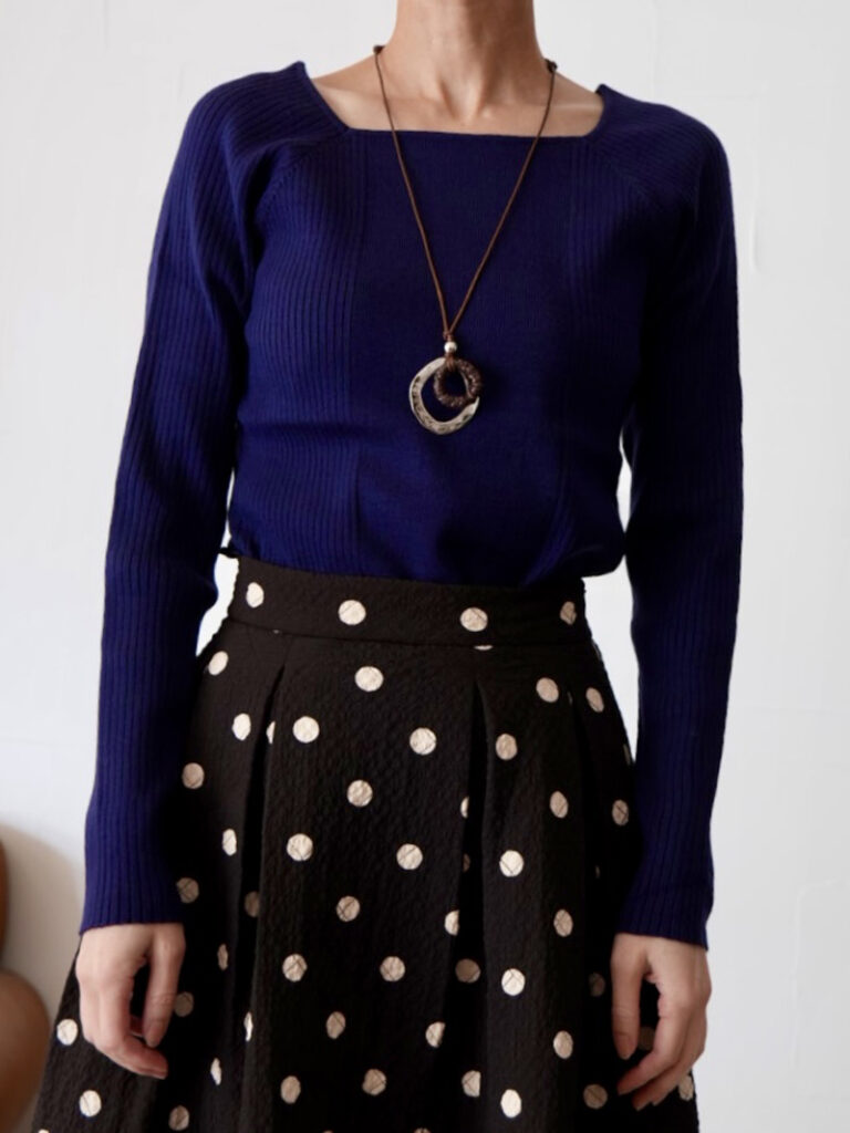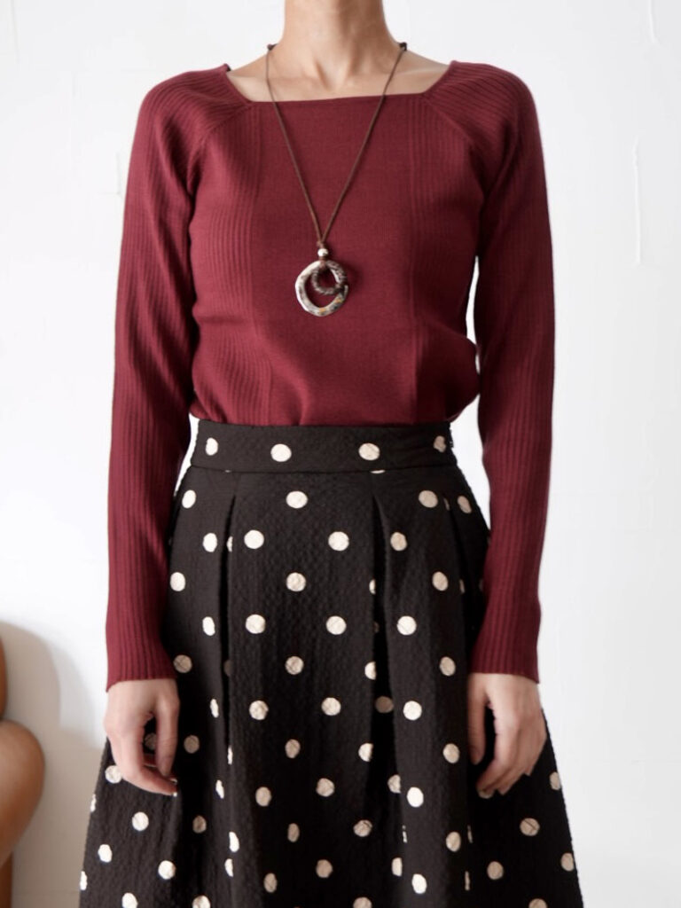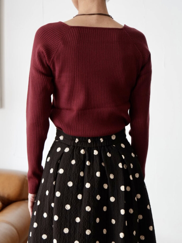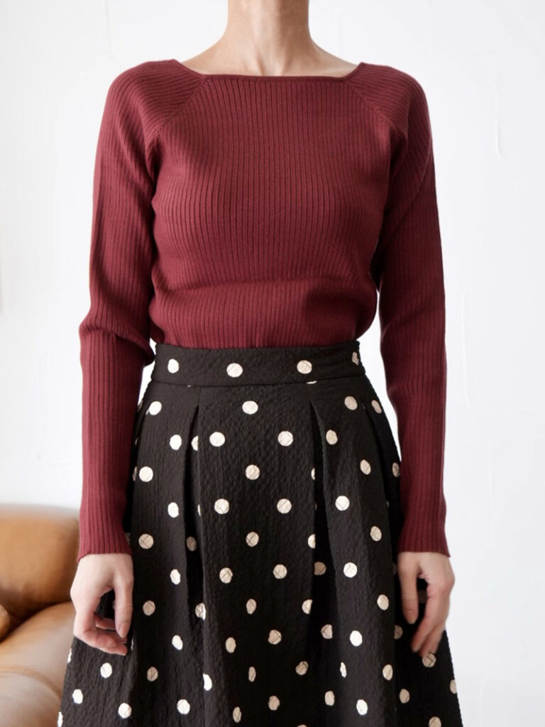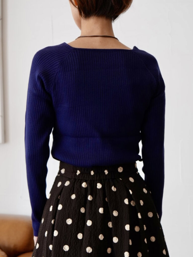 着心地の良い糸を使用した、長袖のスクエアニットトップス。