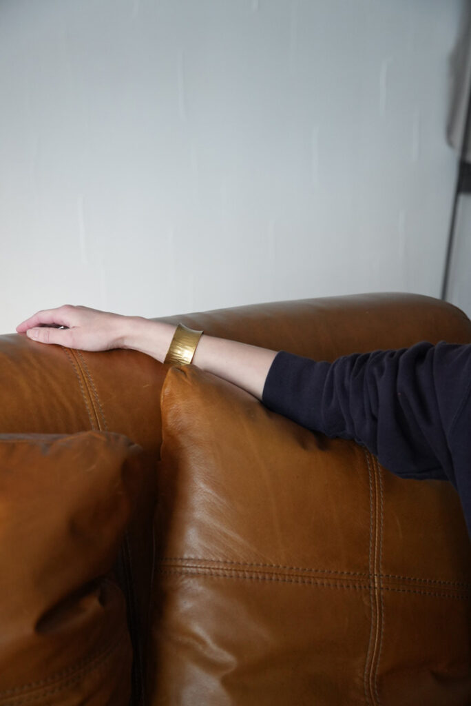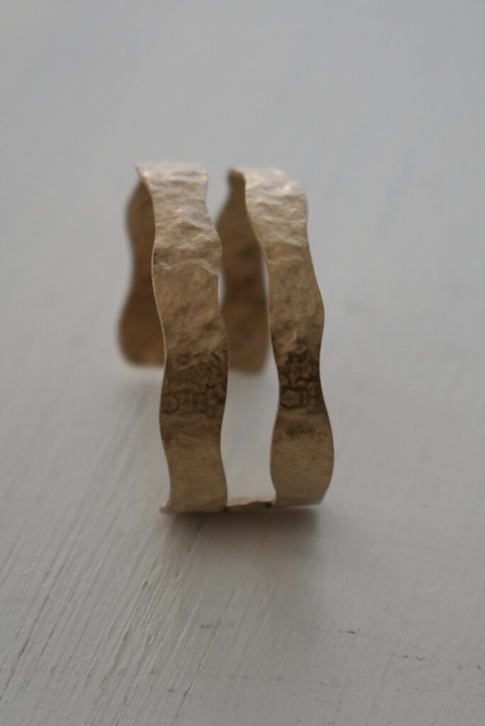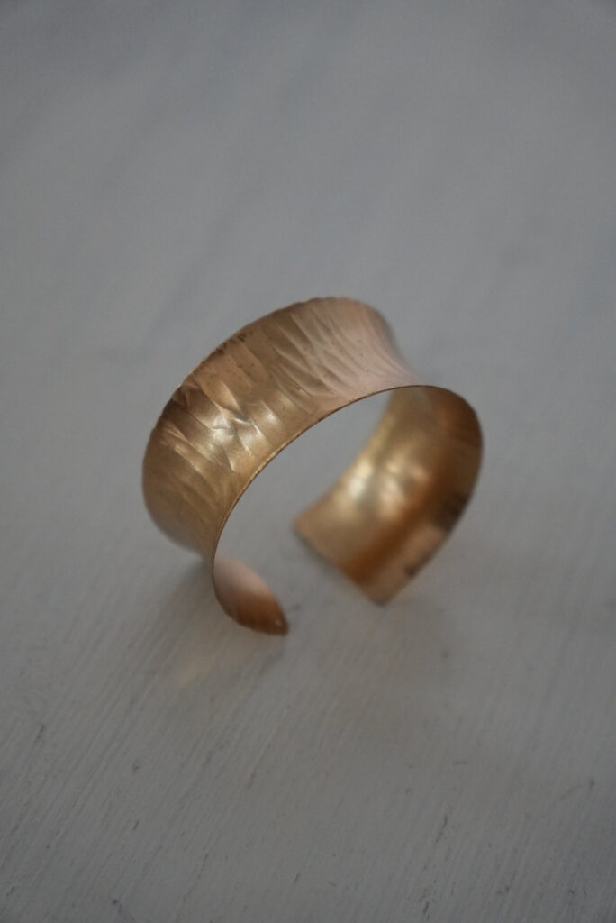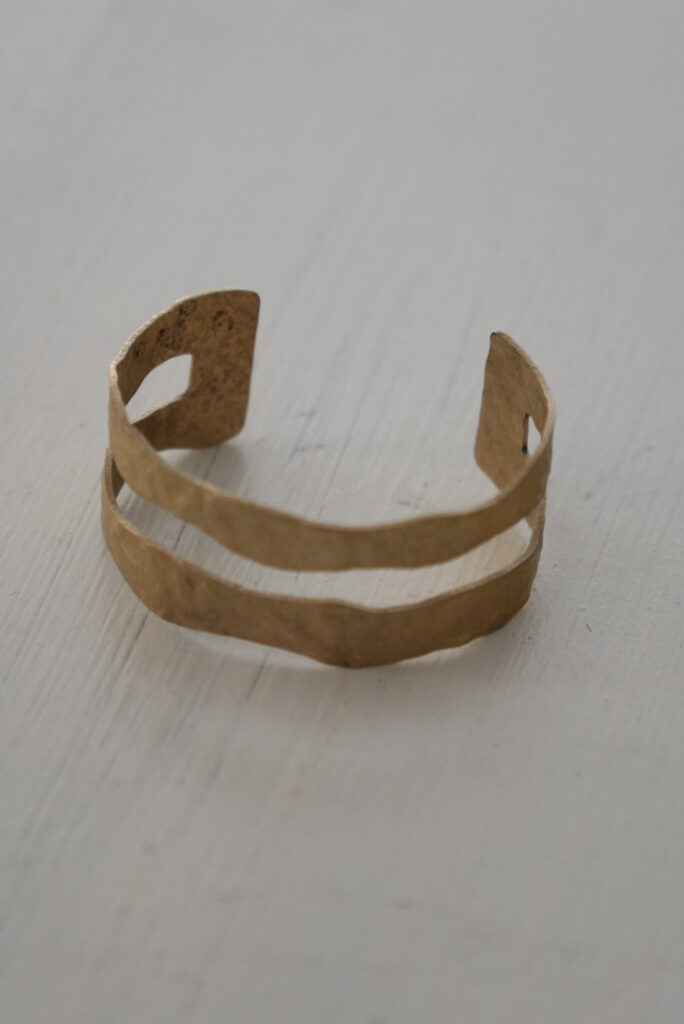 槌目(つちめ)模様やアンティーク調の風合いが、ハンドクラフトならではの温かみを感じさせるバングル。
