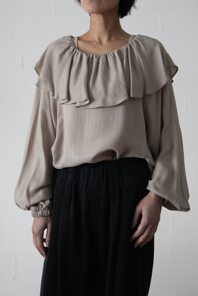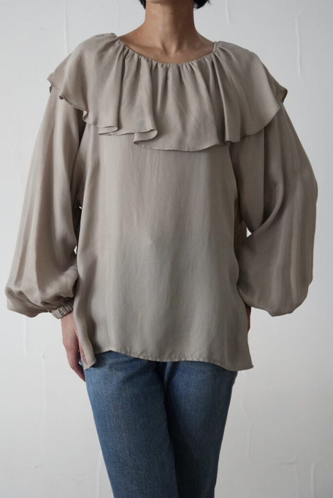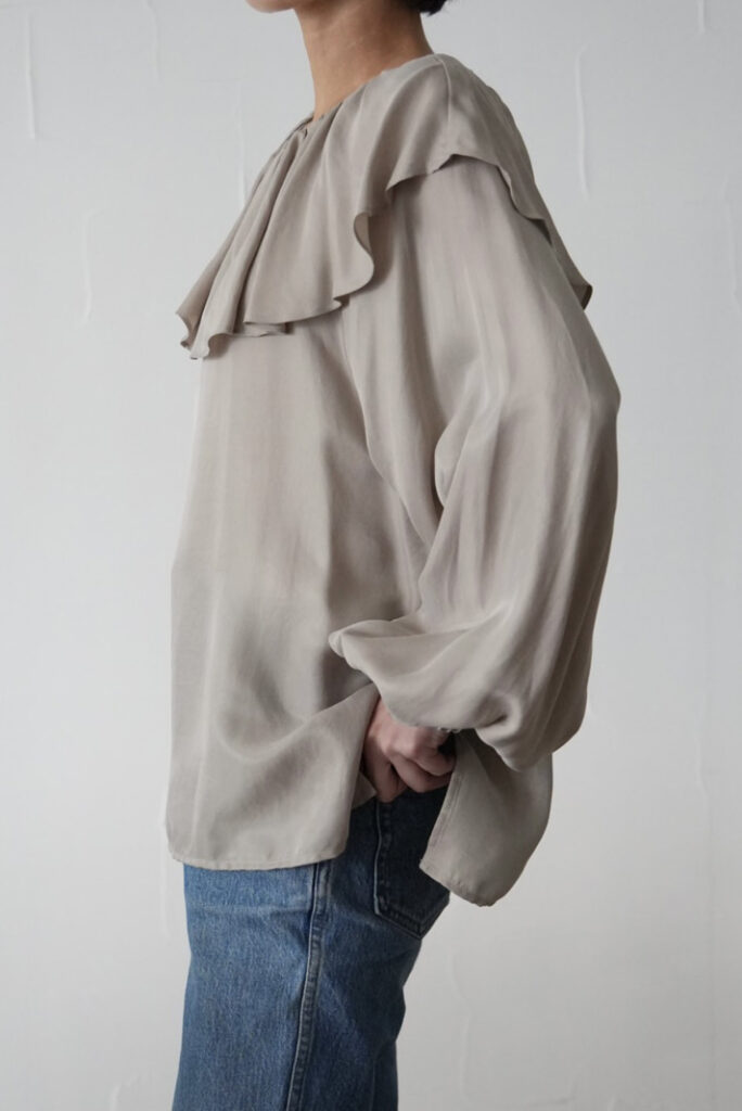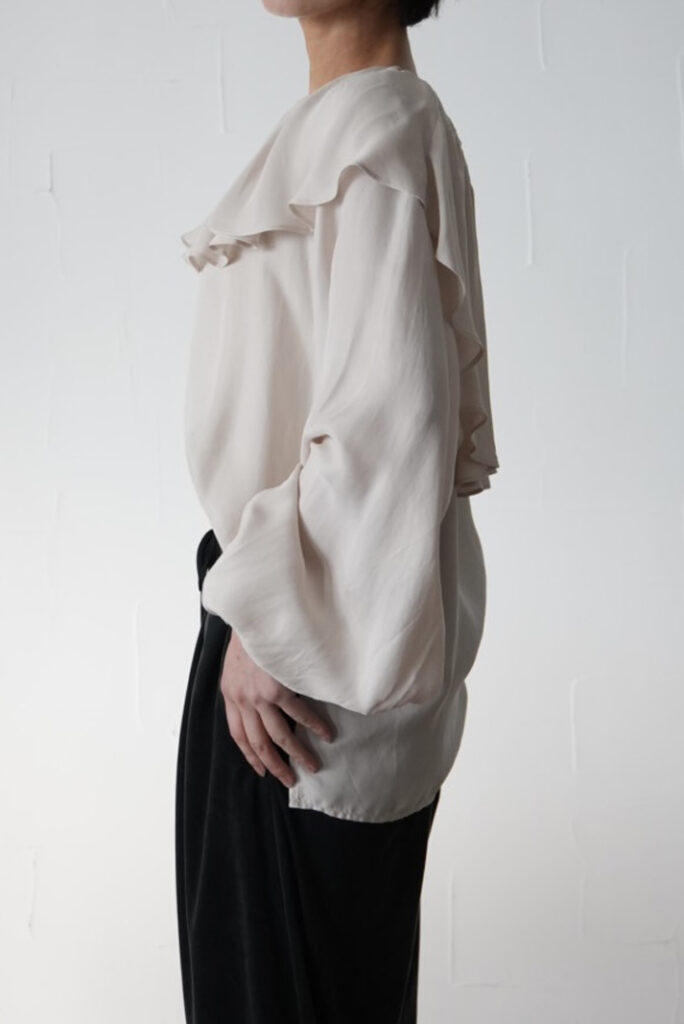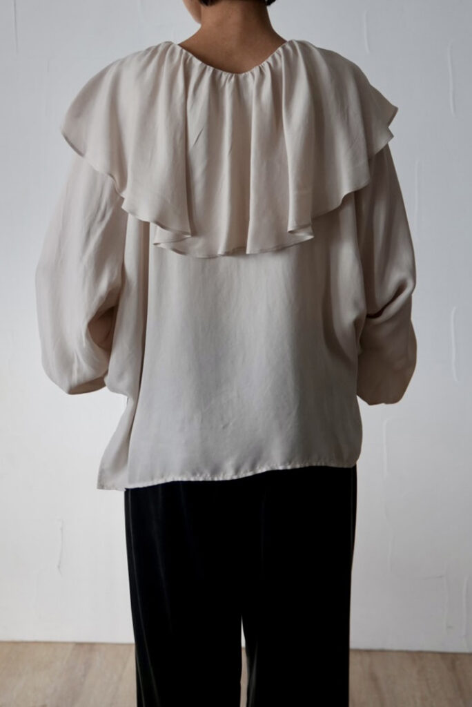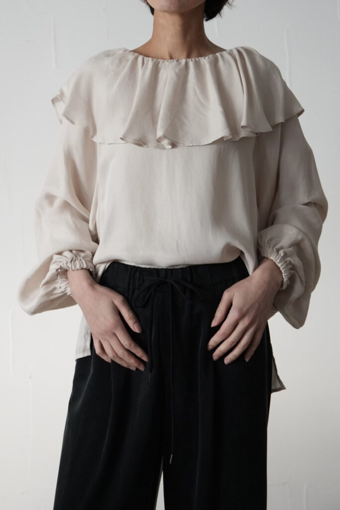 今年らしいラッフルブラウスは、甘くなりすぎないバランスにこだわった一着。