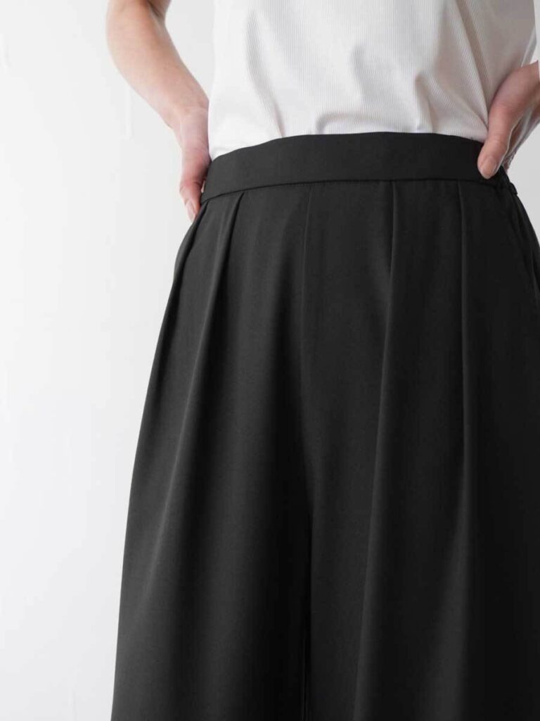トップスをインすると、ツータックがポイントとなってお腹周りをカバーしてくれる心強いアイテム。