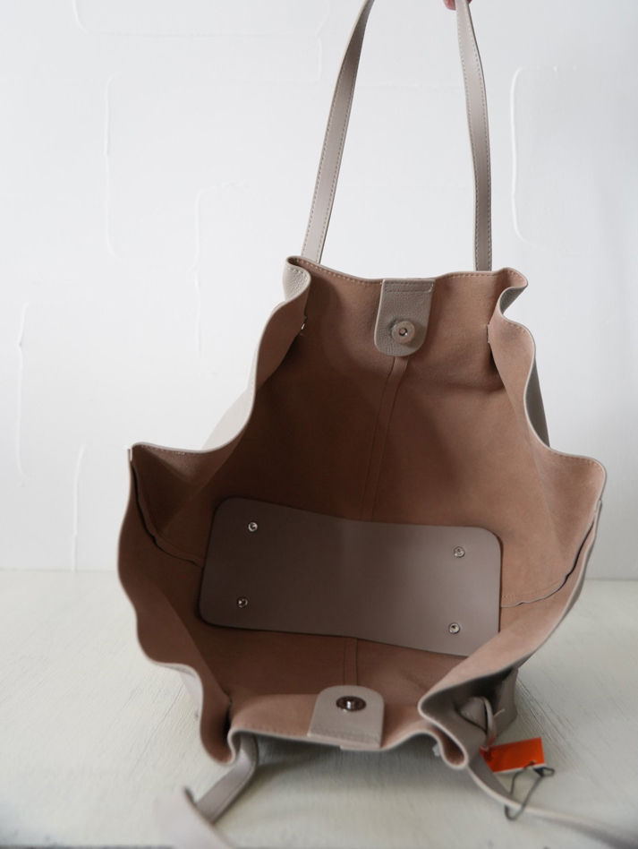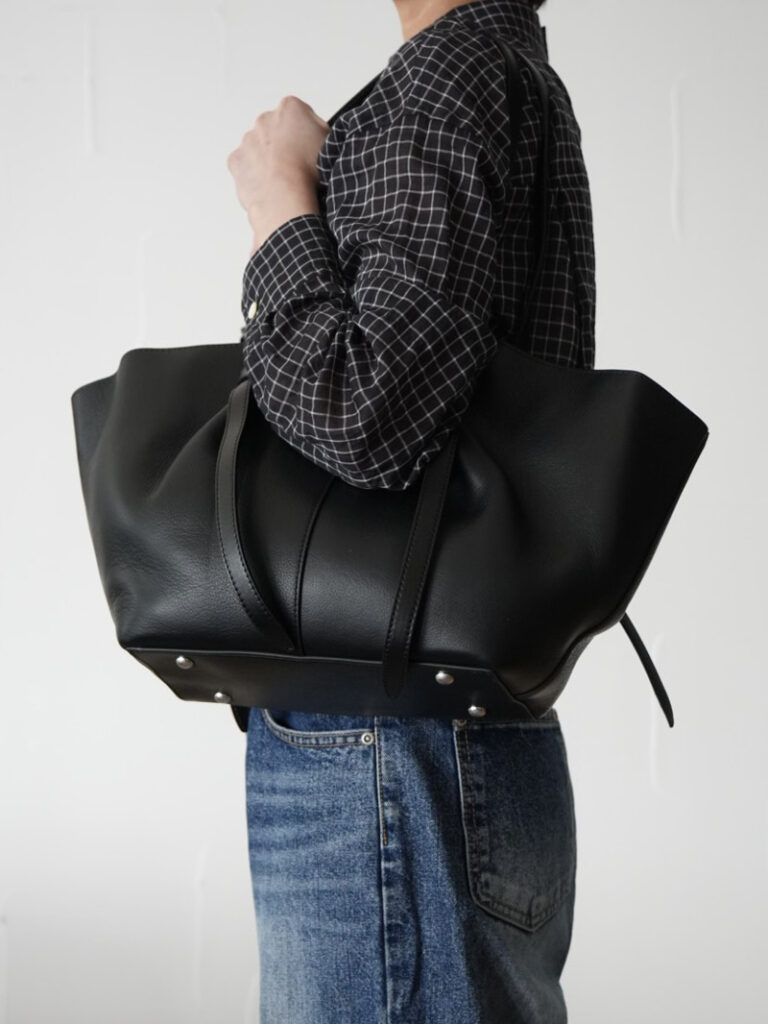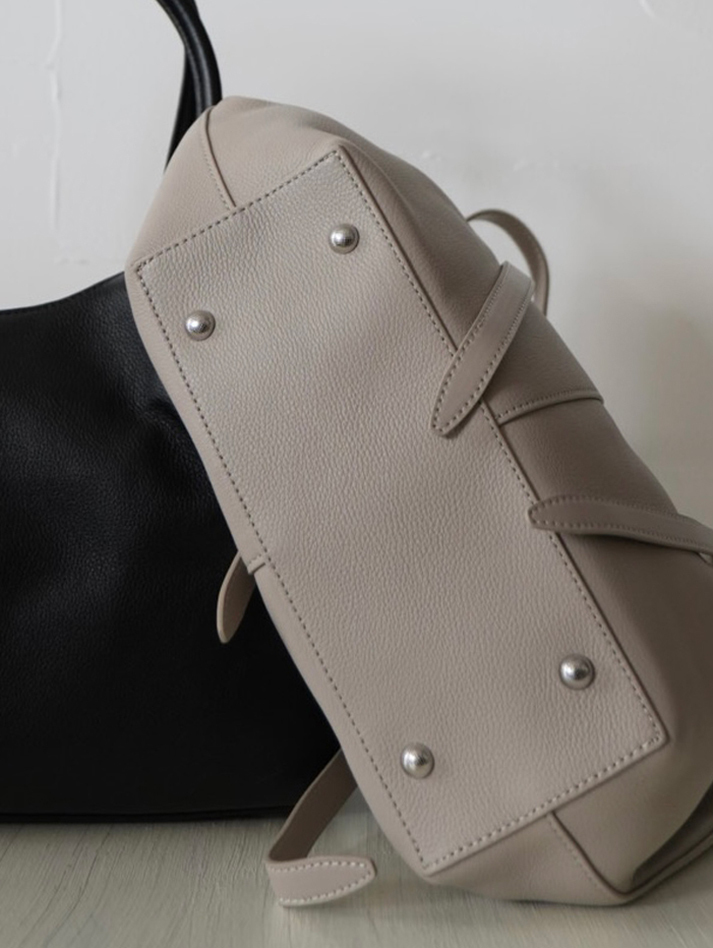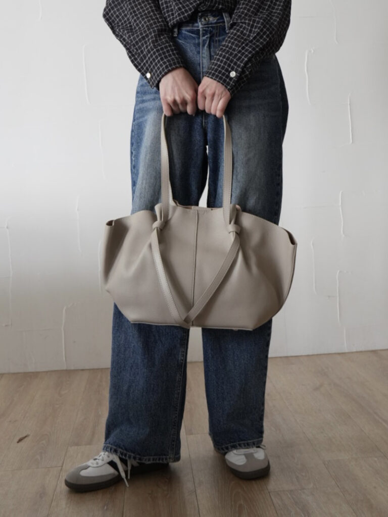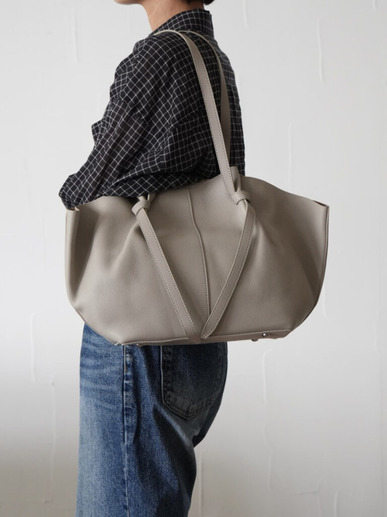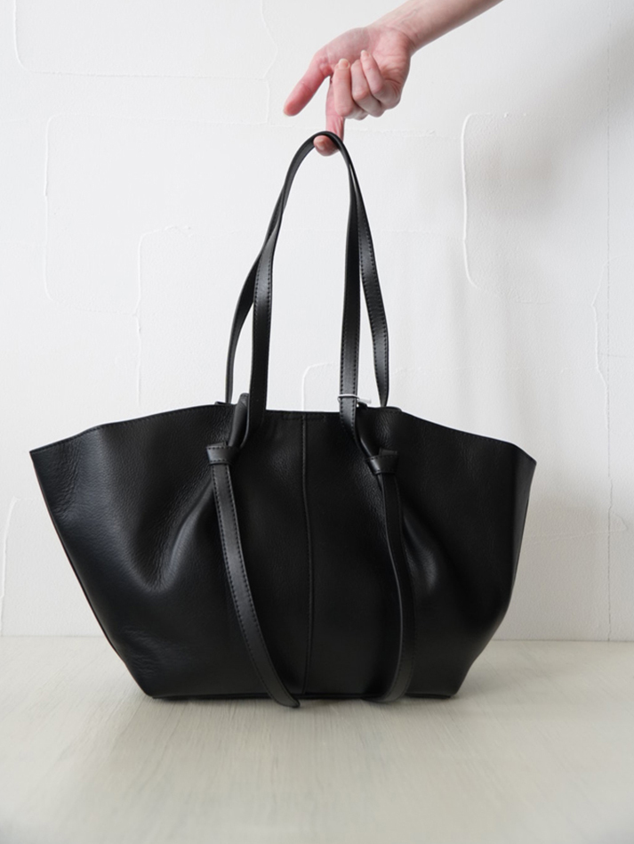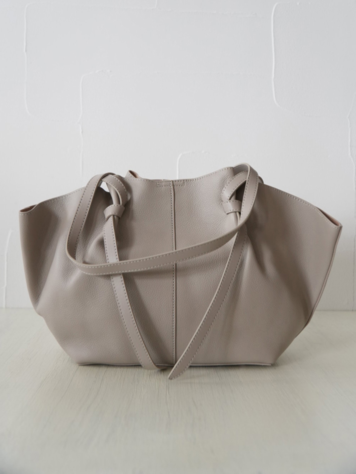 大人の遊び心をプラス。ノットデザインが目を惹く牛革ドレープトート。